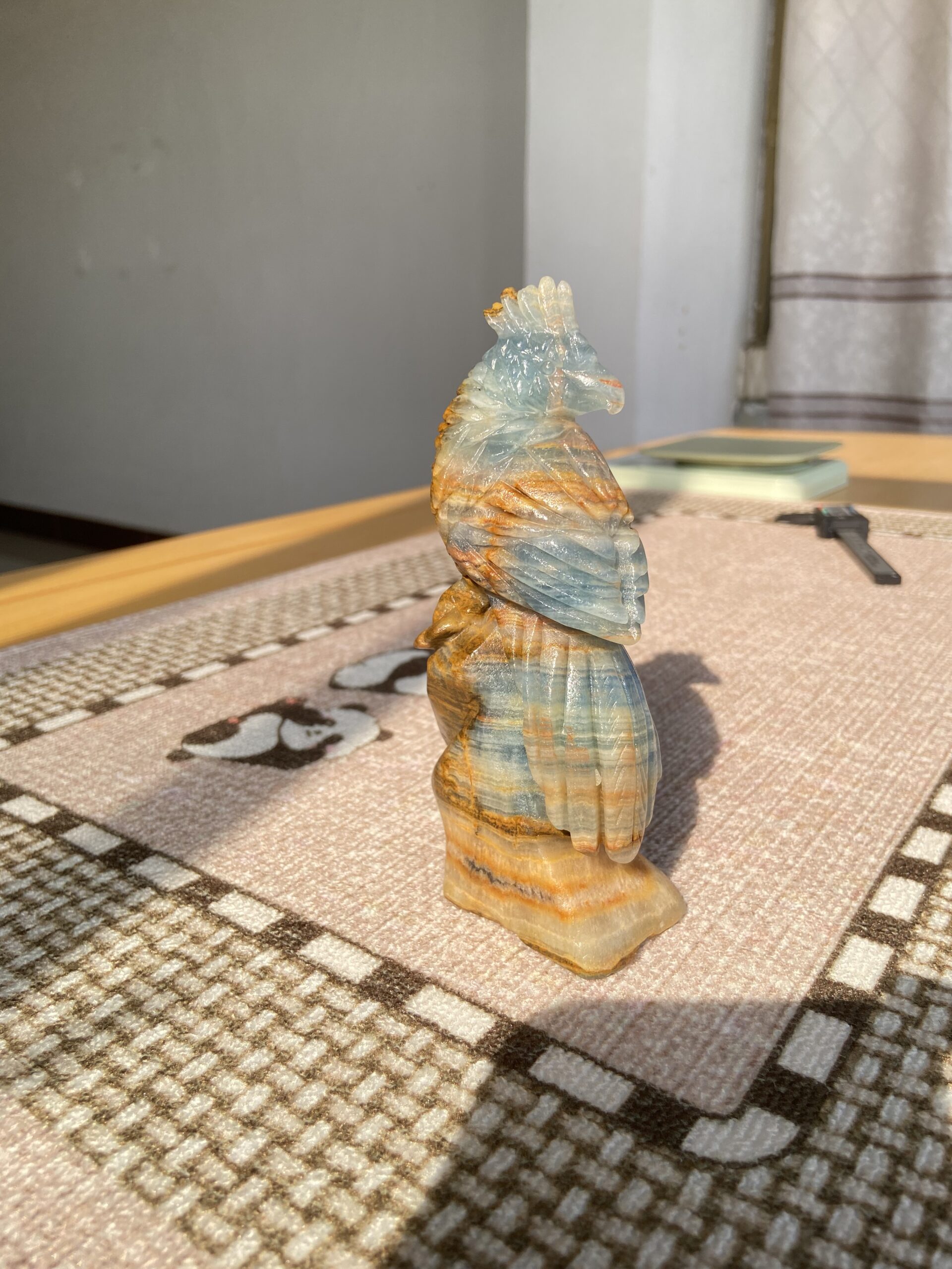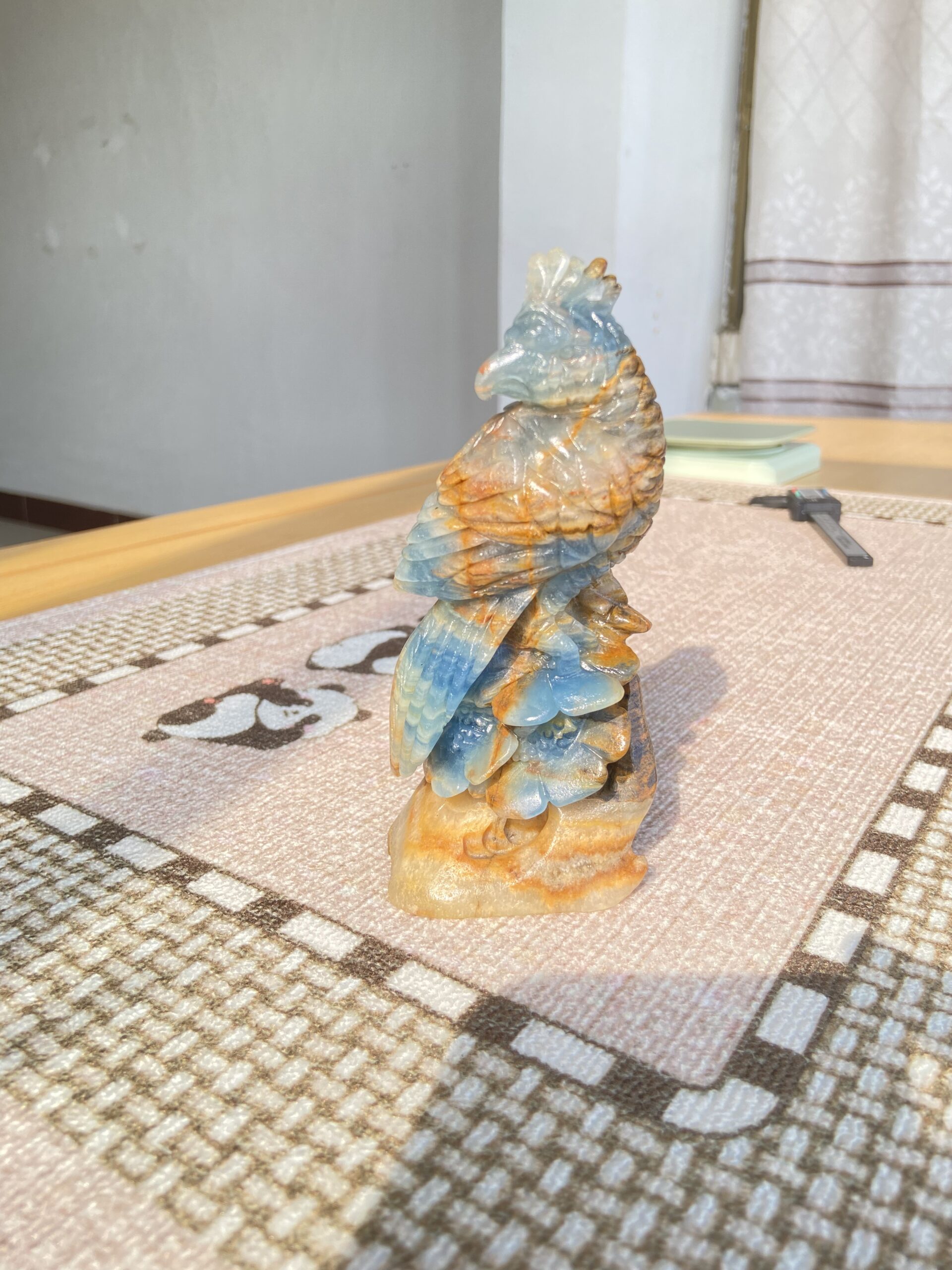 Crystal bird, blue onxy carving, a beautiful bird.