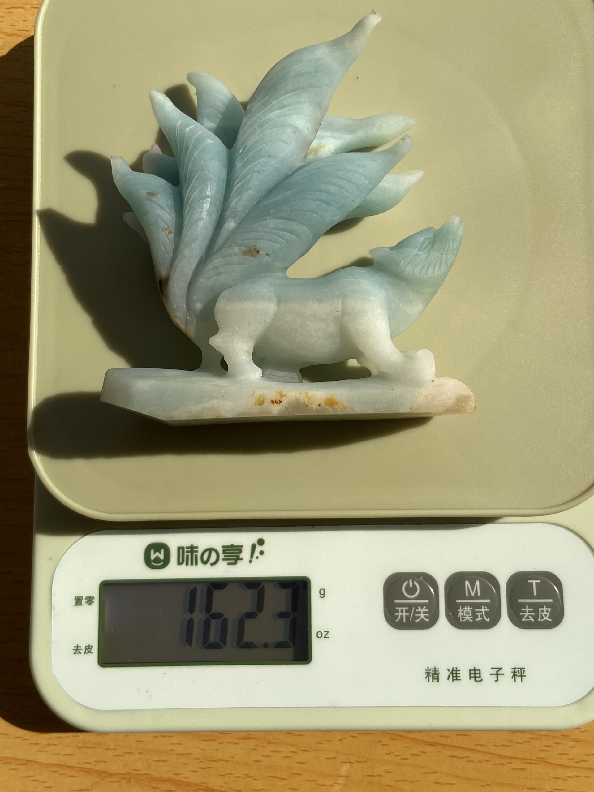 -Appearance features: It has rich colors, including light blue, blue-green, white, beige, light brown,